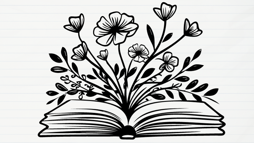 Book spine poetry is made by arranging titles to create a poem.